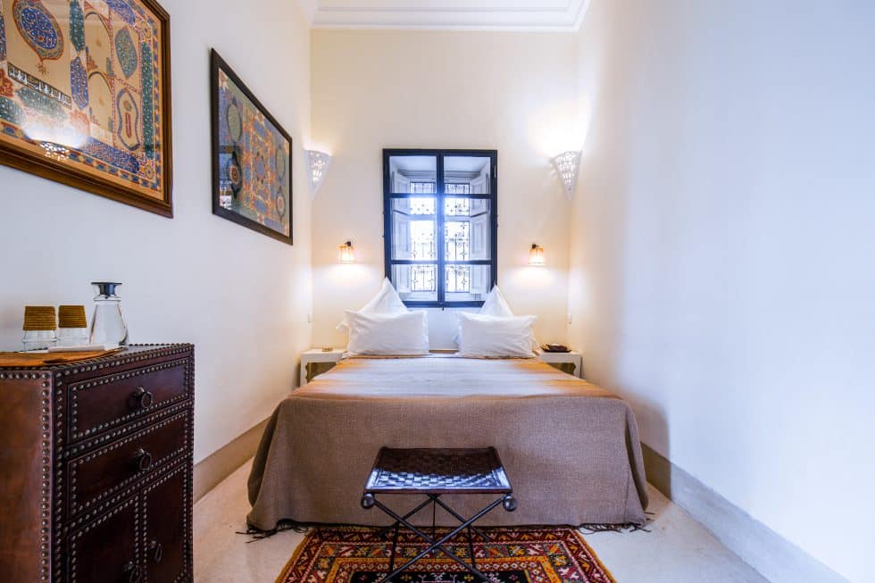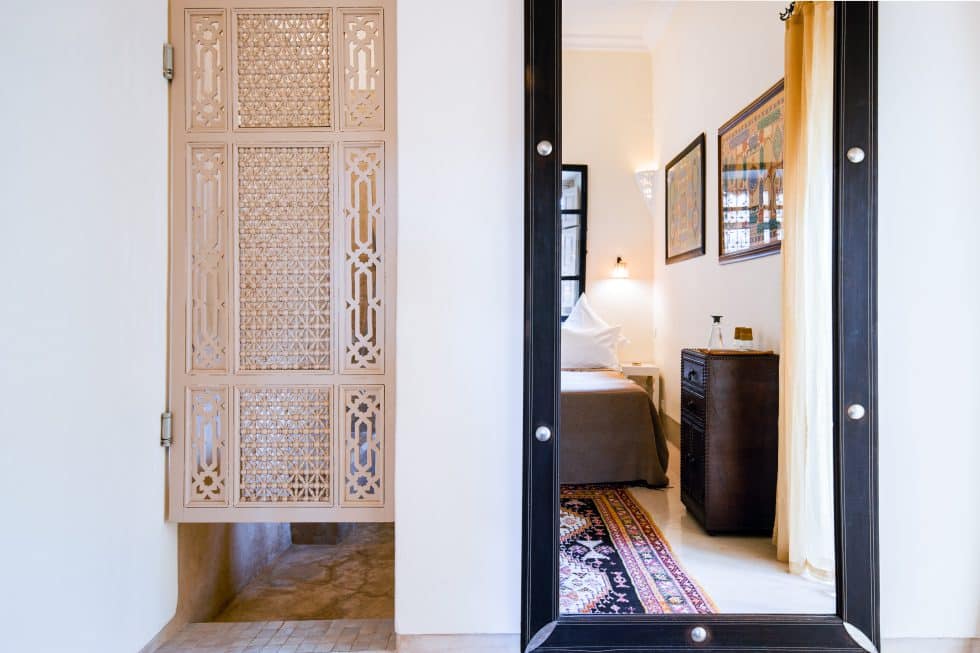 All bedrooms are on the upper floors, have individual air-conditioning, and are accessible through a shared balcony providing a space to relax and enjoy drinks. All rooms have stylish fireplaces, some are made more efficient with inset wood stoves to help cope with the winter nights which can be chilly in Marrakech. All rooms have adjustable lighting that can be either romantic or practical.